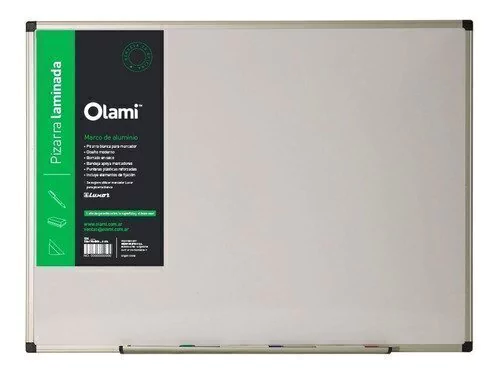Pizarra para escribir con marcador, superficie de melamina, de fácil borrado en seco. Marco de aluminio anodizado. Punteras protectoras de ABS. Incluye elementos de fijación a la pared y bandeja porta marcadores.